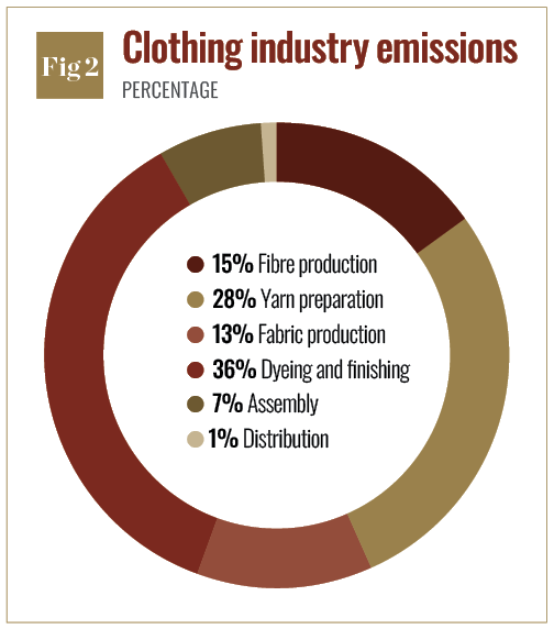 This is concerning, given that upstream effects can spread when tariffs or other external shocks hit. Production costs often need to be renegotiated, and without strong supplier relationships, shifts in production can increase delays, labour risks, and reputational exposure. The trend is also concerning for its climate implications. The fashion industry, with its complex global supply chains, is particularly vulnerable to such ripple effects. The US tariffs that went into effect on August 7th directly affect sourcing hubs with an outsize influence on the industry’s carbon footprint. Cascale finds that just 1,800 factories in nine countries account for over 80 percent of measured carbon emissions from the apparel, textile, and footwear industries (see Fig 2). Of these, six countries – China, Bangladesh, Vietnam, India, Turkey and Pakistan – have been directly affected by the new tariffs.